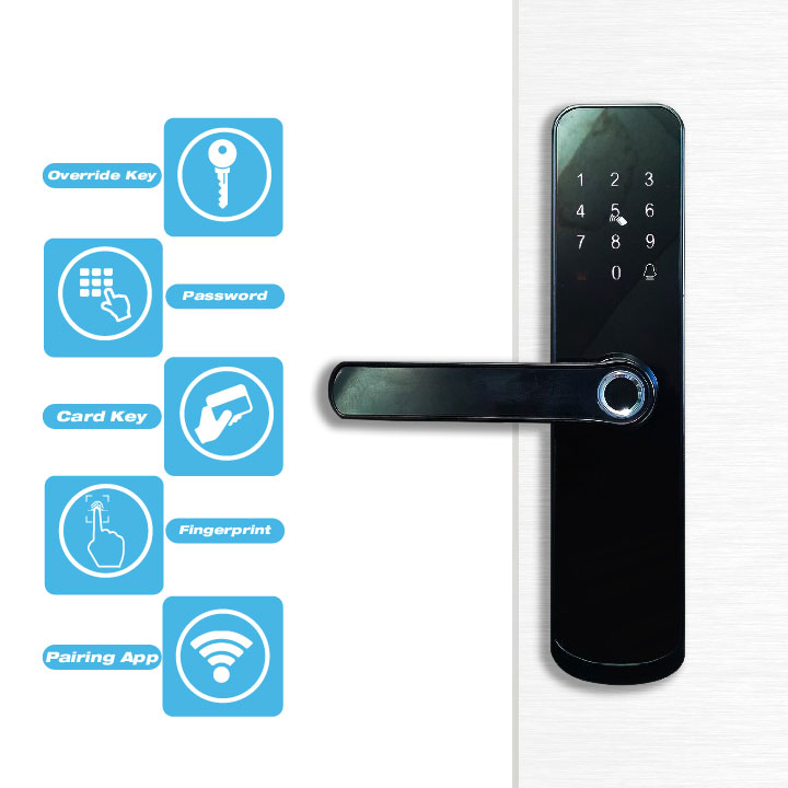 LEXCIA M501 Merupakan kunci pintar yang telah didukung oleh 5 pengoperasian pembukaan, sehingga sangat user friendly untuk digunakan dalam keseharian dan dapat dibuka melalui phone mobile anda.